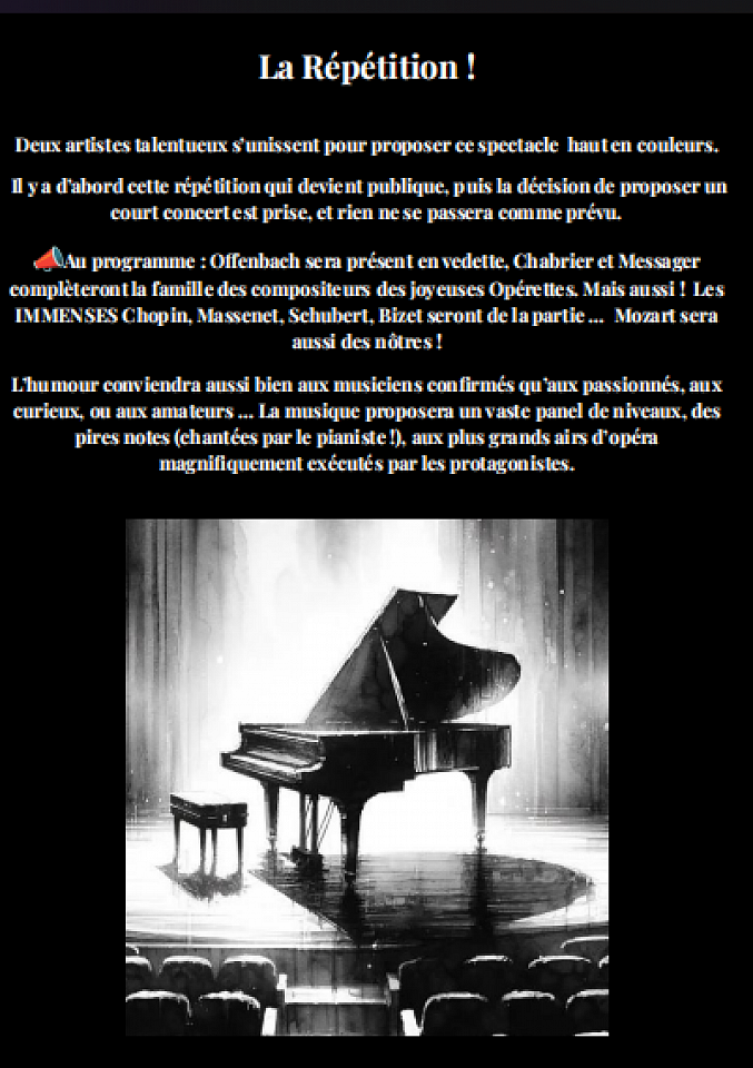 Ce duo se distingue par un esprit caustique, une dérision subtile et un humour qui fait mouche à chaque instant. Leur complicité naturelle se ressent dans chaque note, chaque regard, chaque phrase chantée.